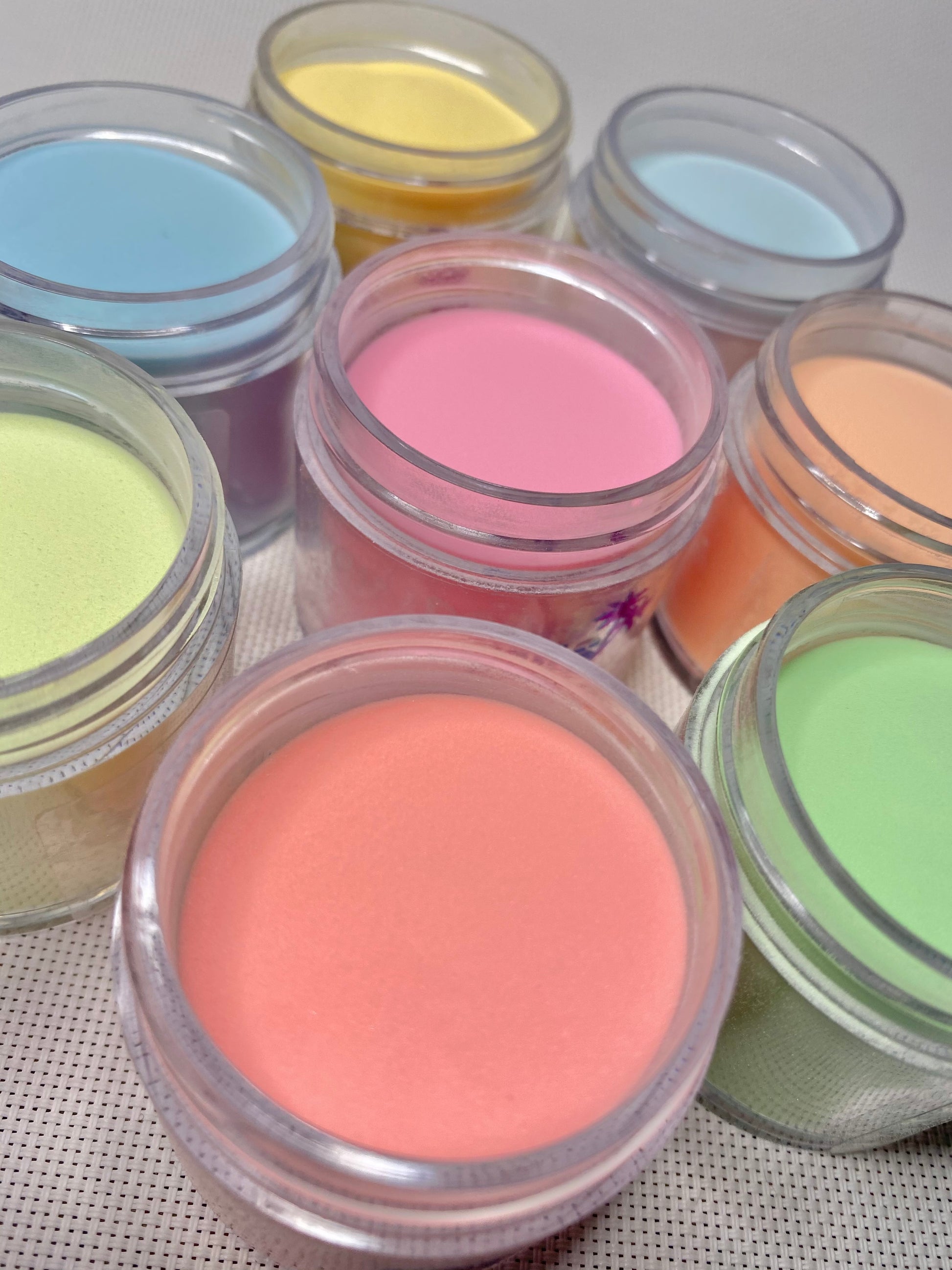 ¡Elija entre 8 polvos acrílicos diferentes que brillan en la oscuridad, todos en frascos de 1 oz!